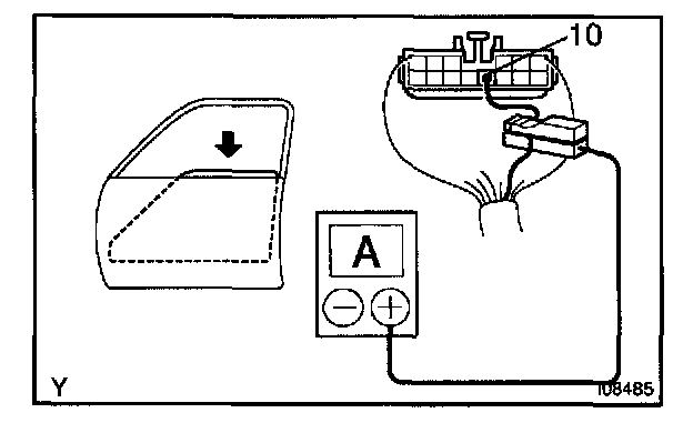 b. Attach a current - measuring probe to terminal 10 of the wire harness.