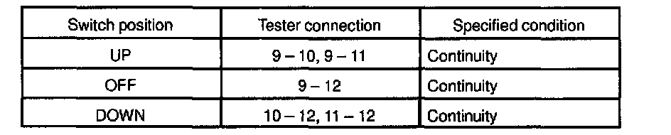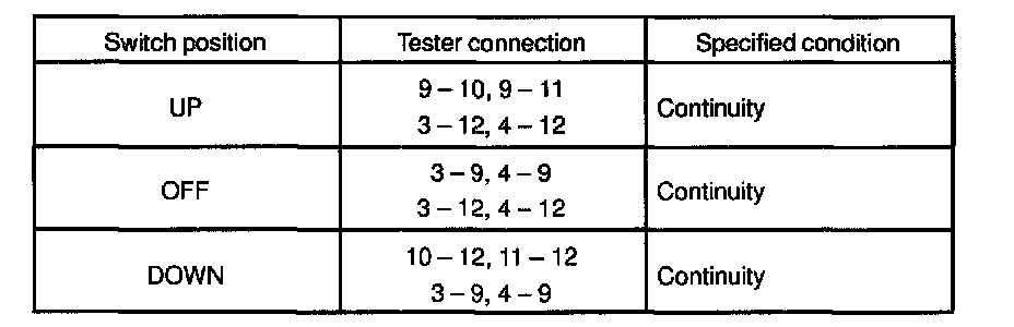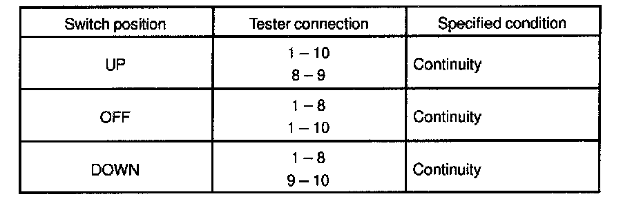 If continuity is not as specified, replace the master switch