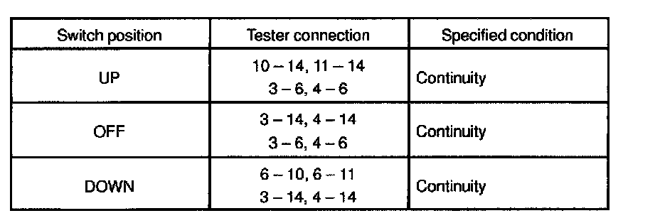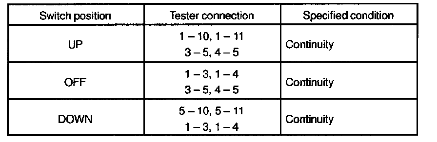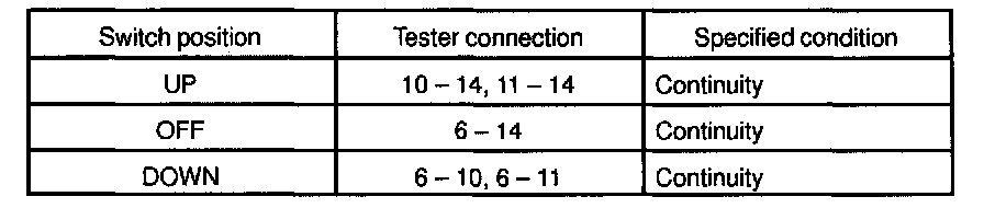 INSPECT POWER WINDOW MASTER SWITCH CONTINUITY