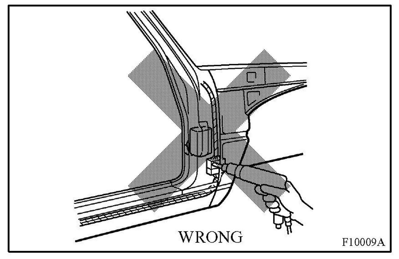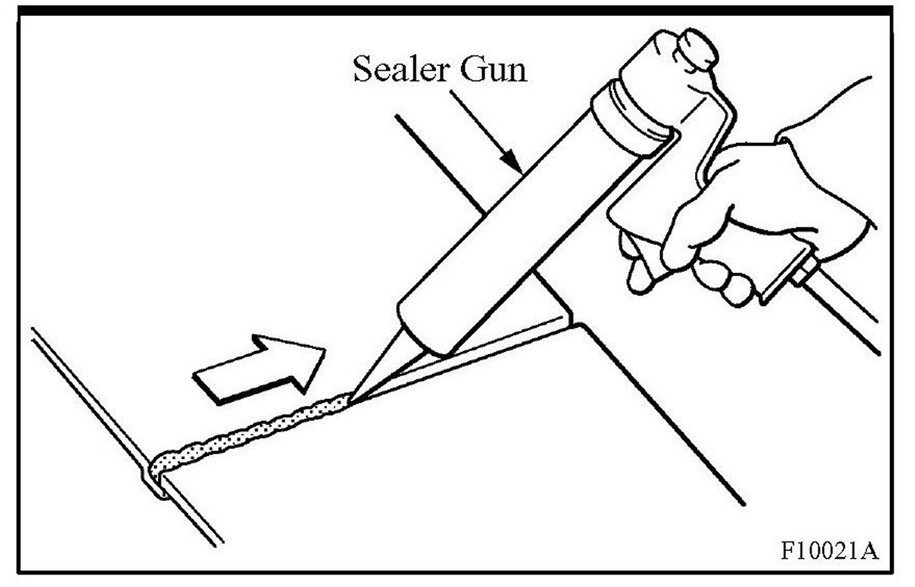 1. For water-proofing and anti-corrosion measures, always apply the body sealer to the body panel seams and hems of the doors, hoods, etc.