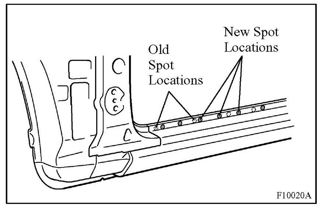 2. Plug welding should be done with a MIG (Metal Inert Gas) welder. Do not gas weld or braze panels at areas other than specified.