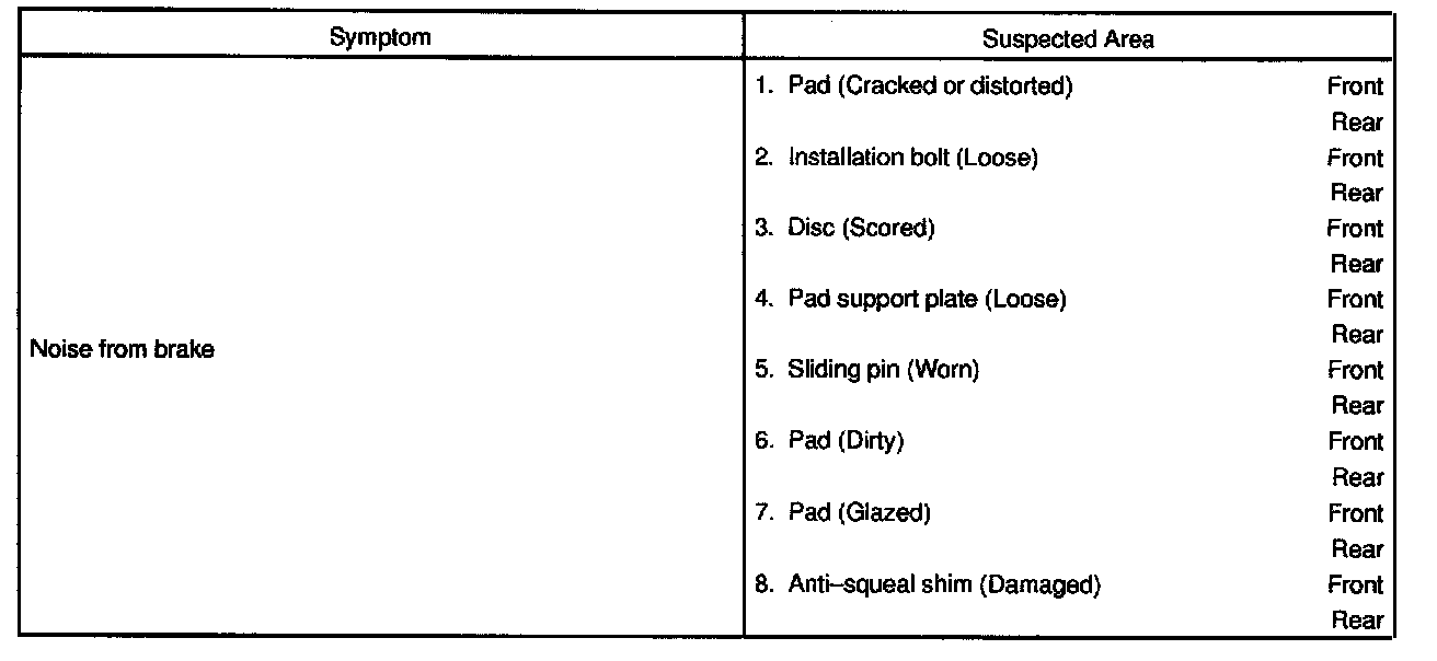 PROBLEM SYMPTOMS TABLEUse the table to help you find the cause of the problem. The numbers indicate the priority of the likely cause of the problem. Check each part in order. If necessary, replace these parts.