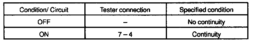 If continuity is not as specified, replace the switch.