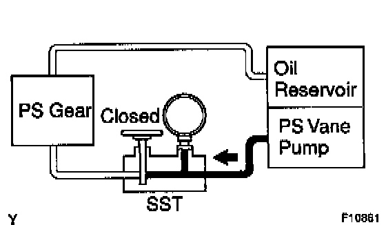 f. With the engine idling, close the valve of the SST and observe the reading on the SST.