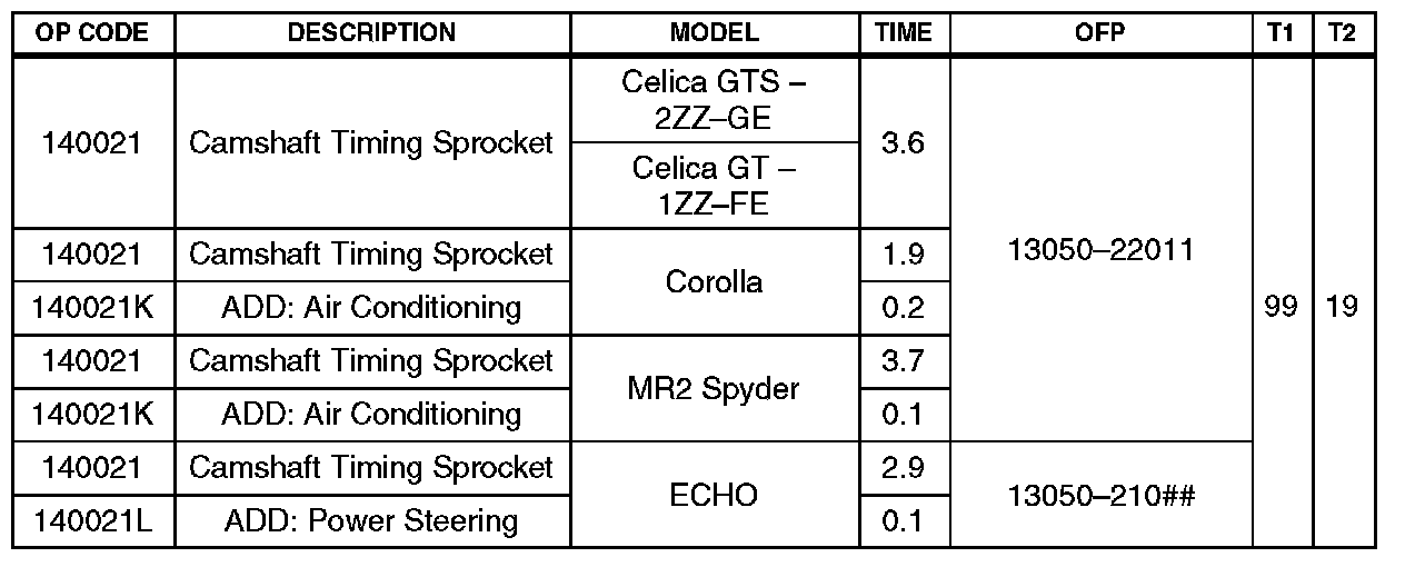 '00 - '02 Corolla, Celica, MR2 Spyder, and ECHO