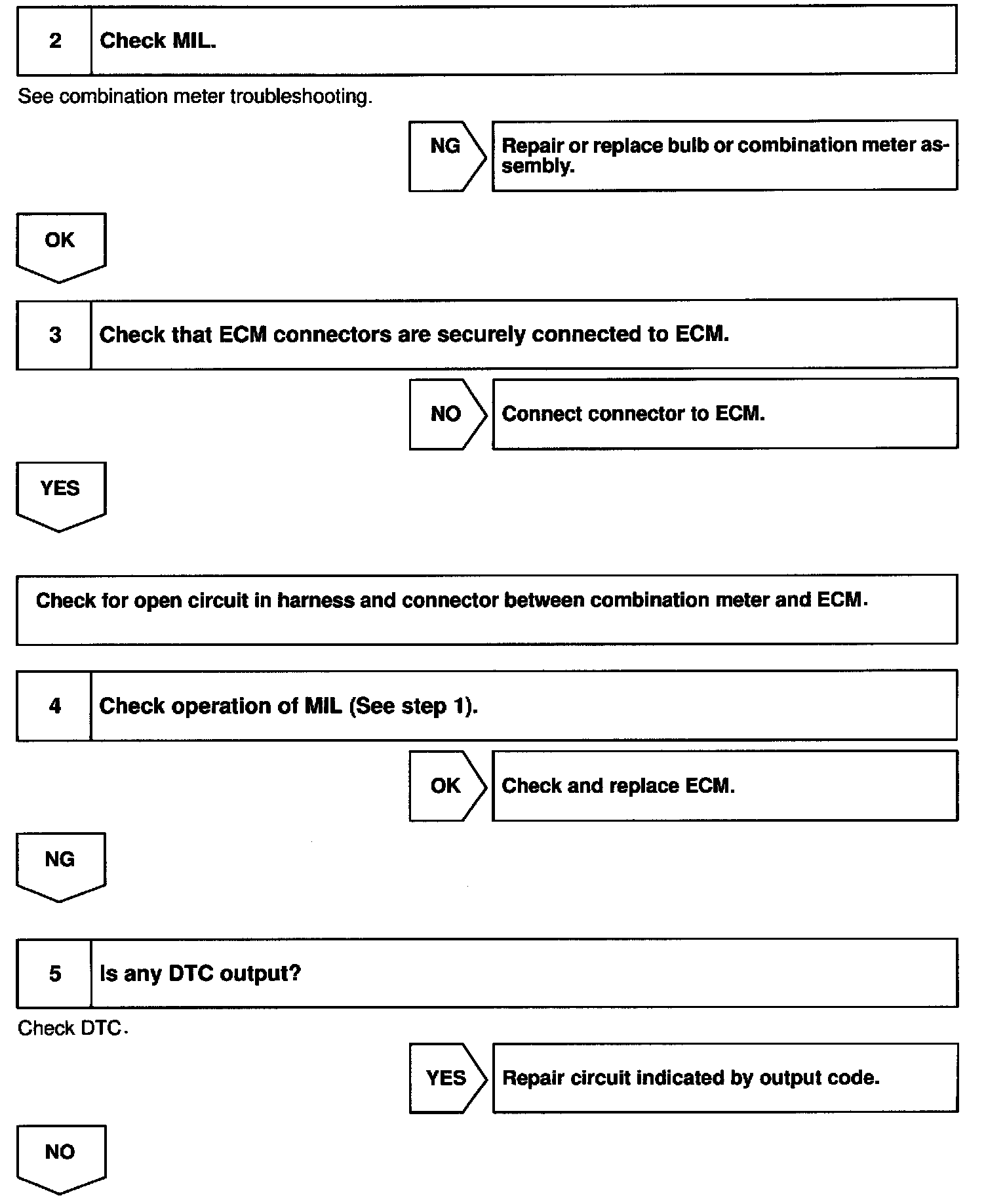 CIRCUIT DESCRIPTIONIf the ECM detects trouble, the MIL lights up. At this time, the ECM records a DTC in memory.