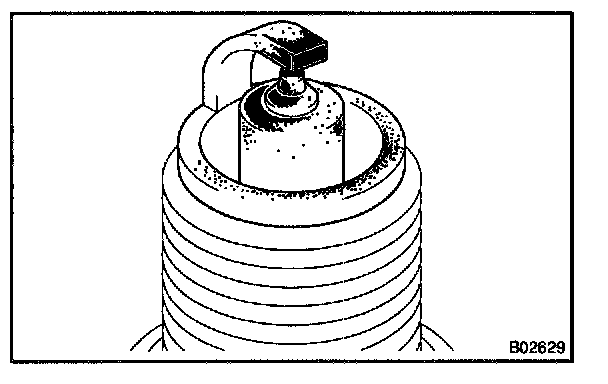 HINT: If there are traces of oil, remove them with gasoline before using the spark plug cleaner.