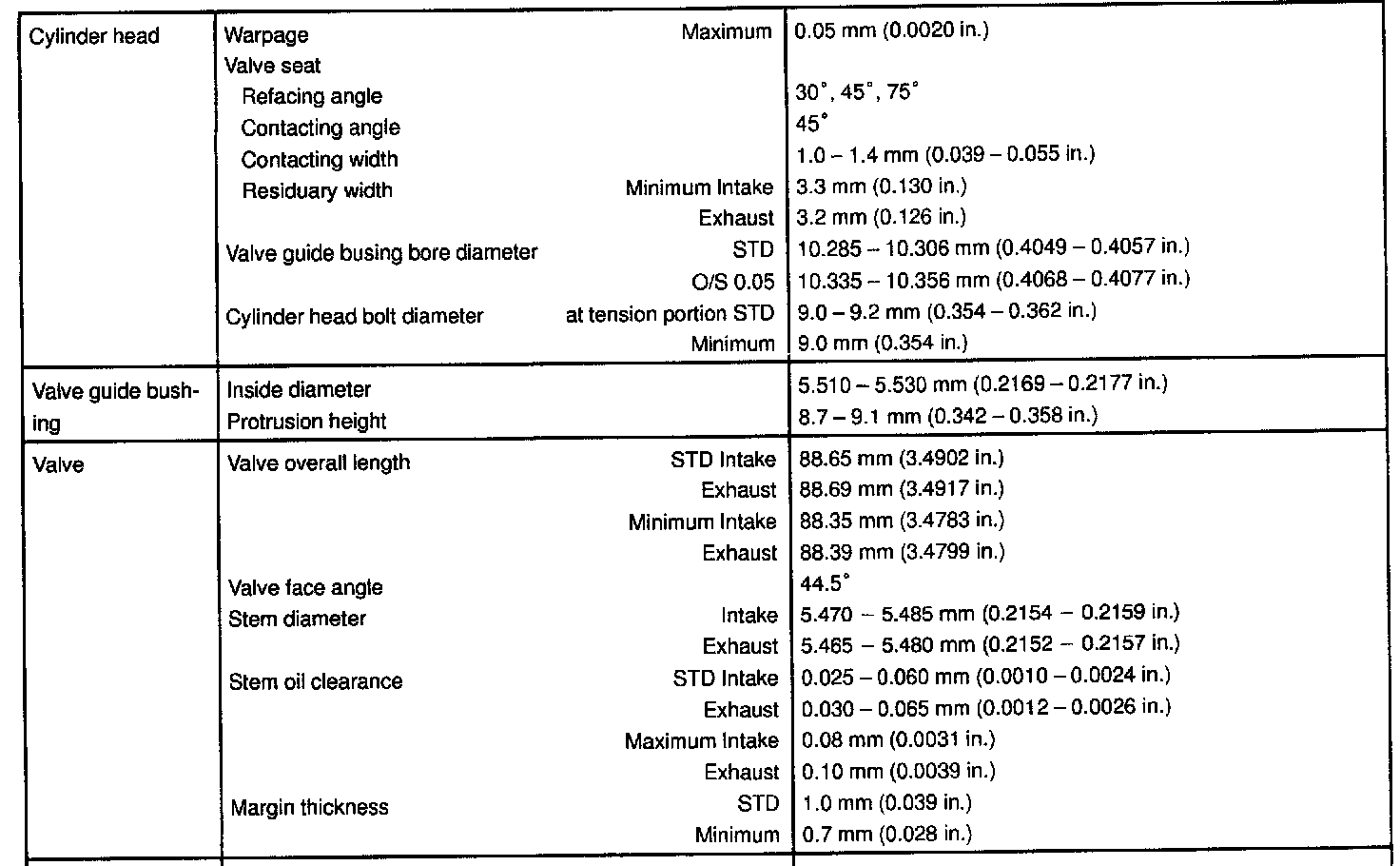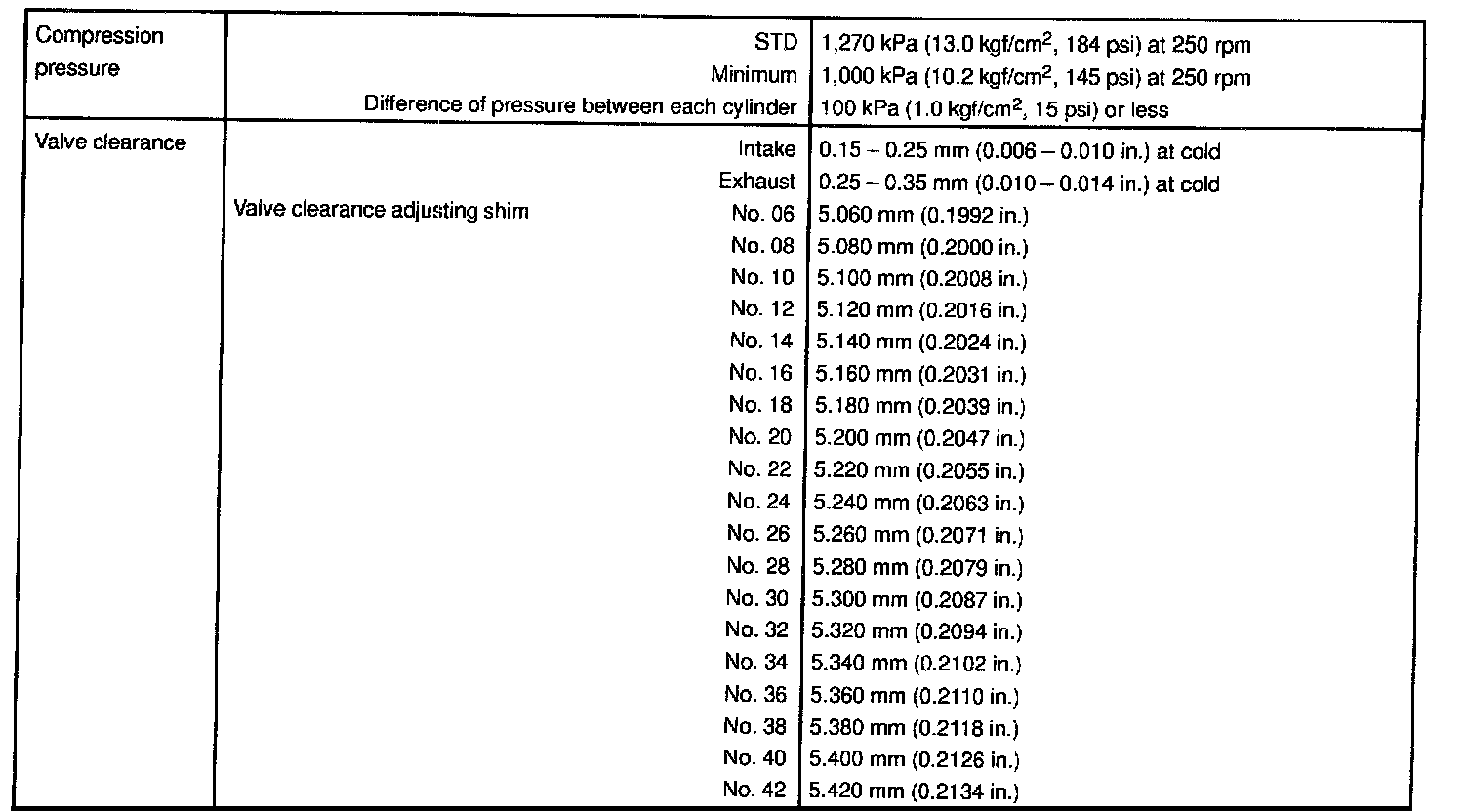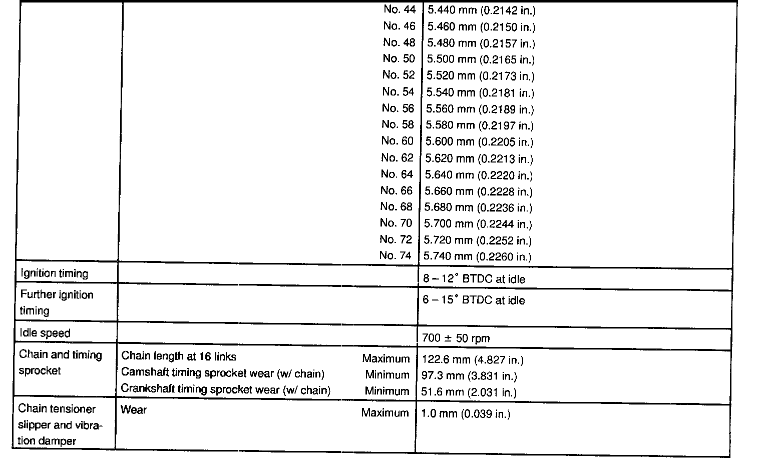 1ZZ-FE Engine Mechanical Data: