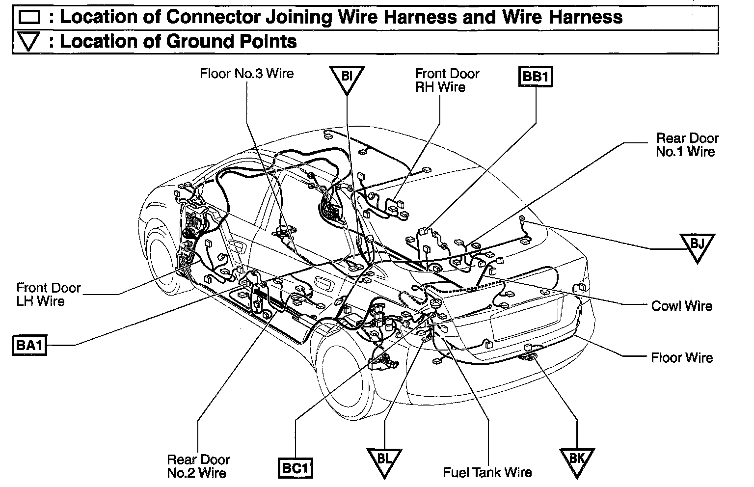 BA1 Rear Door No.2 Wire and Floor Wire (Center Pillar LH)