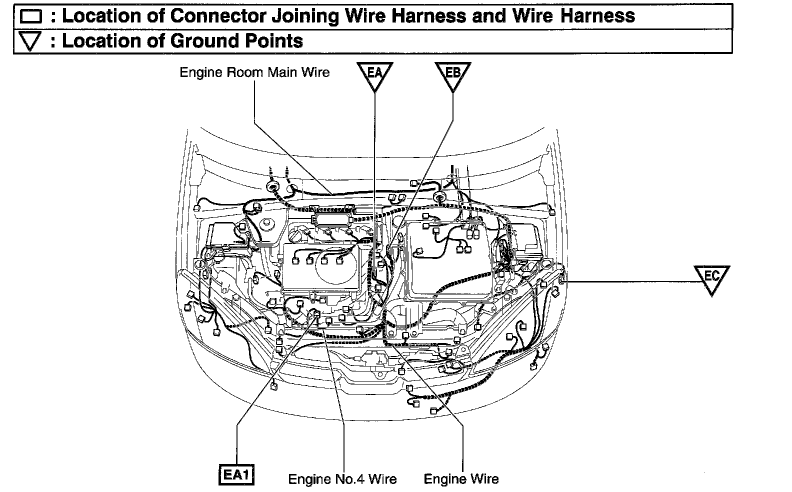 EA1 Engine Wire and Engine No.4 Wire (Near Radiator Fan)