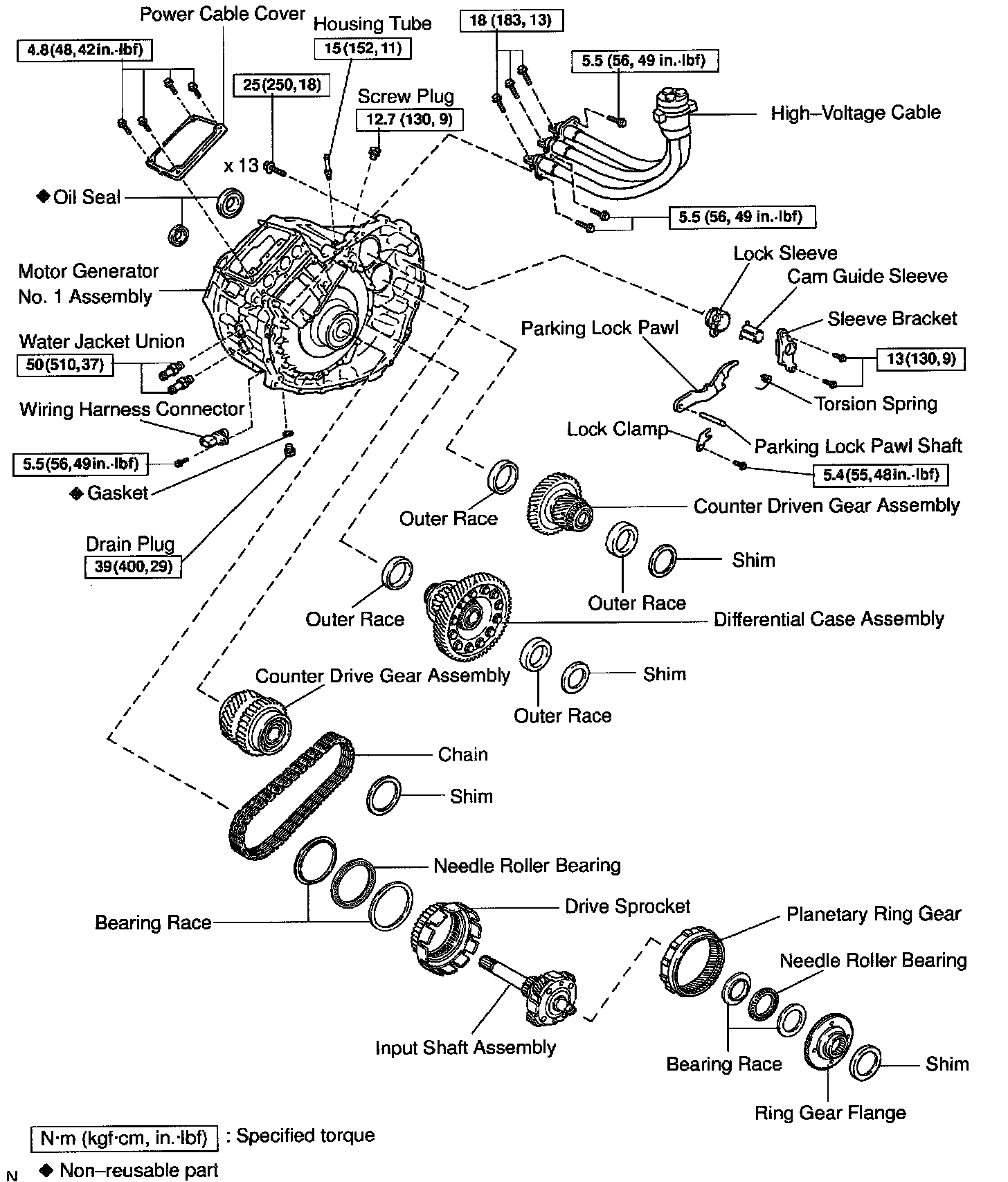 HYBRID TRANSAXLE ASSEMBLY DISASSEMBLY W/ RELATED COMPONENTS