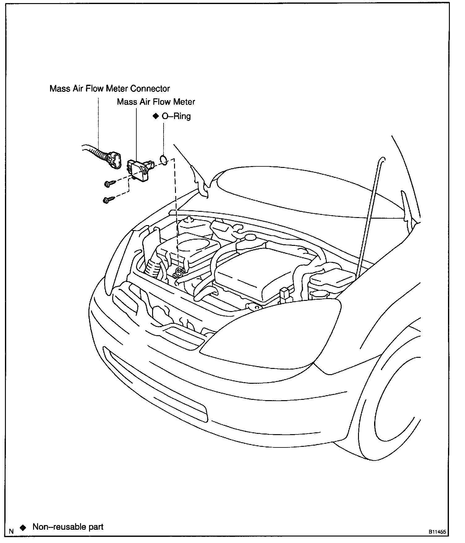 The Intake Air Temperature (IAT) Sensor is installed in the Mass Air Flow (MAF) Meter.