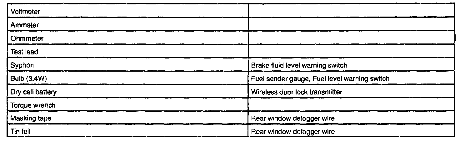 Body Electrical / Recommended Tools: