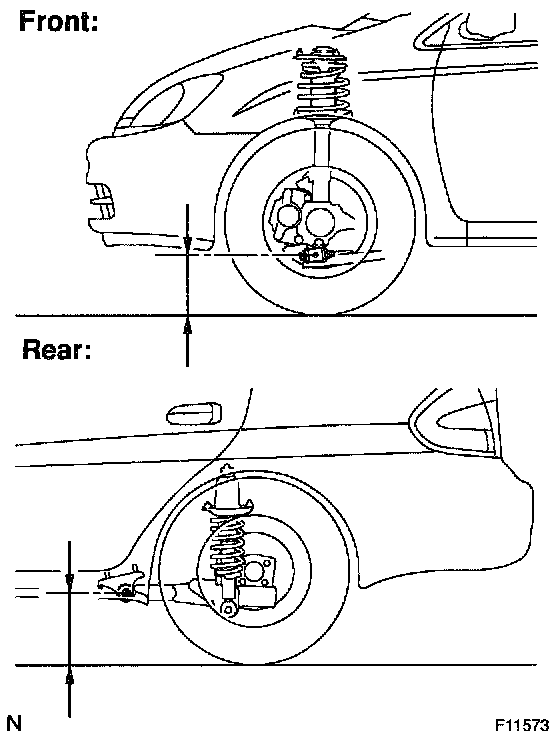 If the vehicle height is not the specified value, try to adjust it by pushing down on or lifting the body.