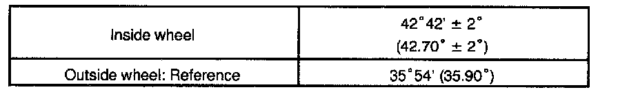 If the right and left inside wheel angles differ from the specified value, check the right and left rack end lengths.