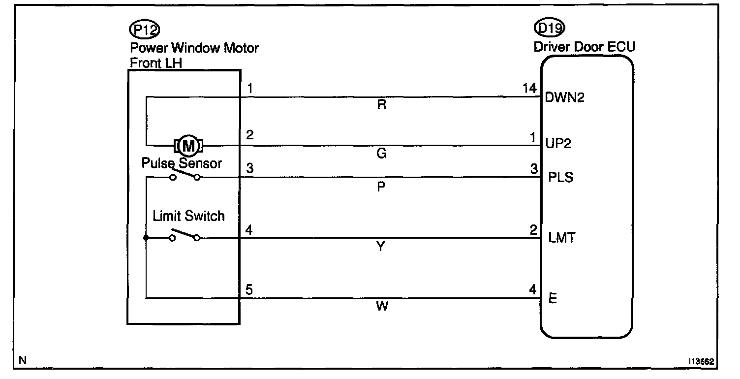 Jam protection pulse switch is built-in the power window motor. Pulse switch outputs ON/OFF pulse when the motor rotates.