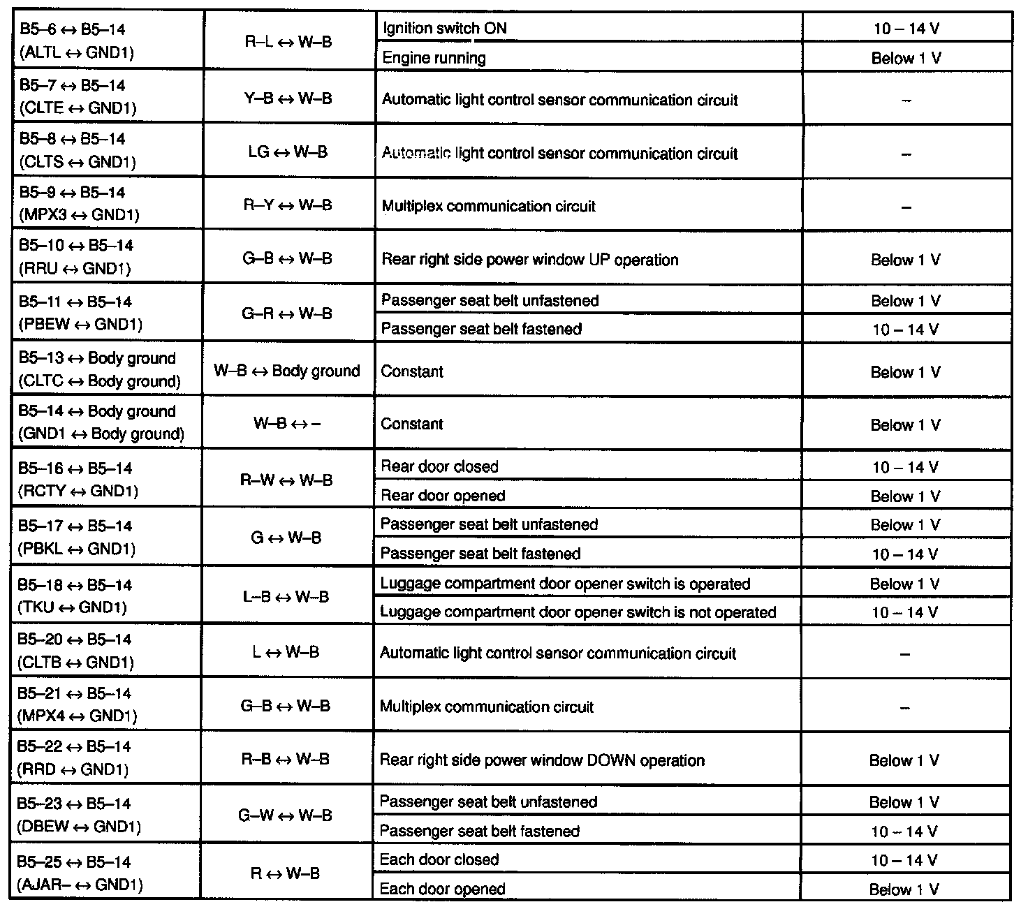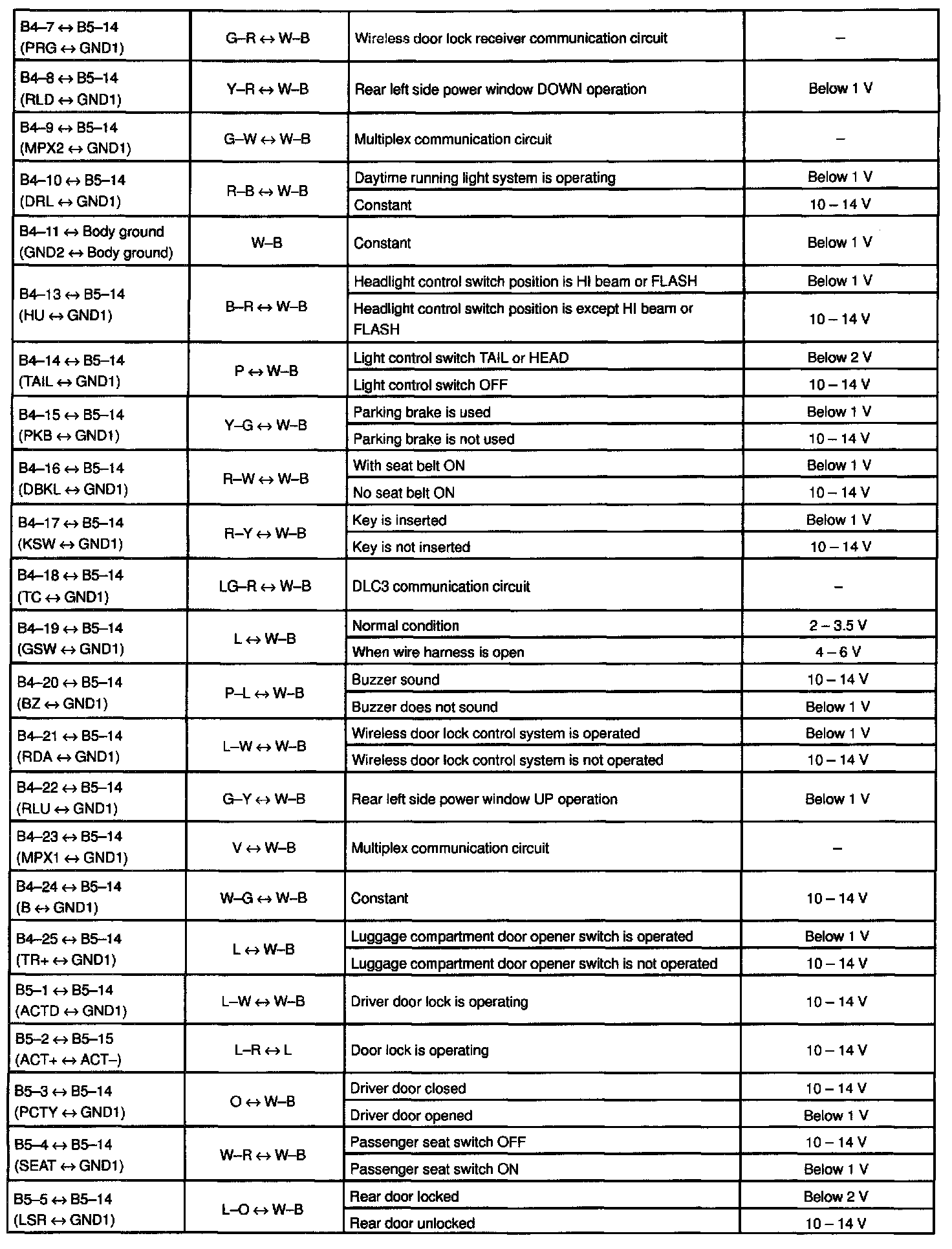 Pinout Values and Diagnostic Parameters