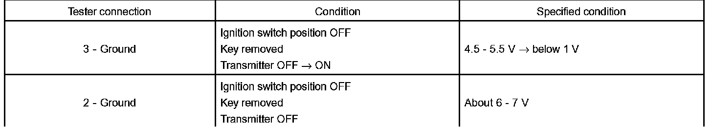d. In the location where is approx. 1 m (3.28 ft) away from driver's outside handle in the right direction, face the transmitter to the vehicle, and check the transmitter operation when pressing a transmission switch on the transmitter.