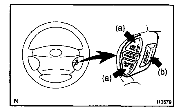 a. Push the control switch to SET/COAST or RES/ACC position and hold it down or up.