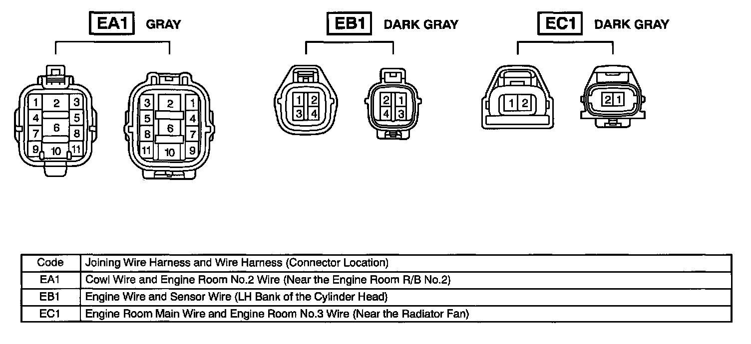 Under Hood Wire Harness To Wire Harness Connectors (EA1 - EC1):
