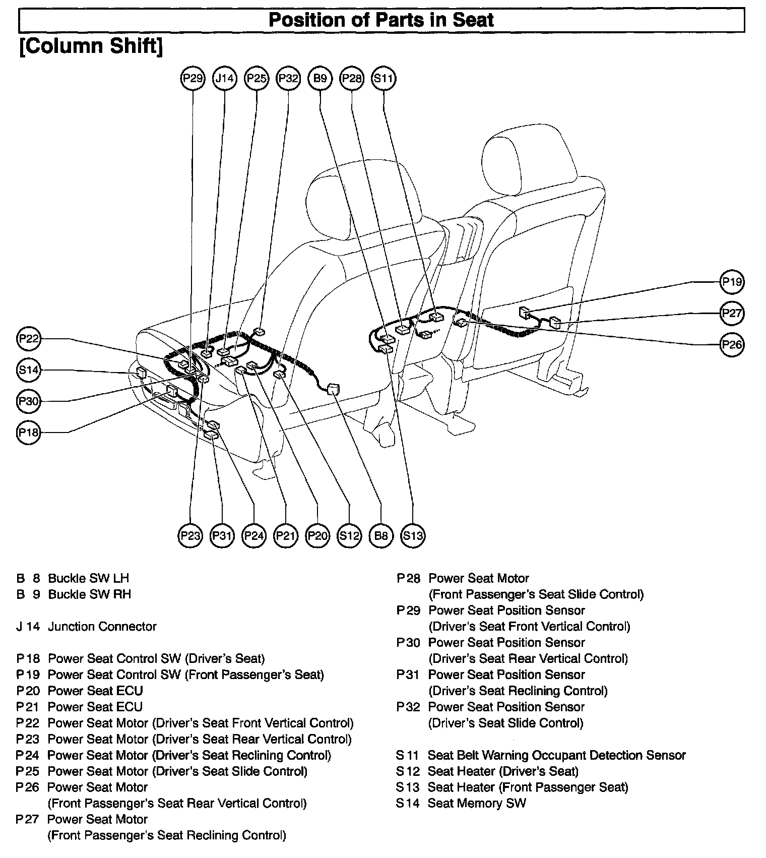 Position Of Parts In Seat - Column Shift:
