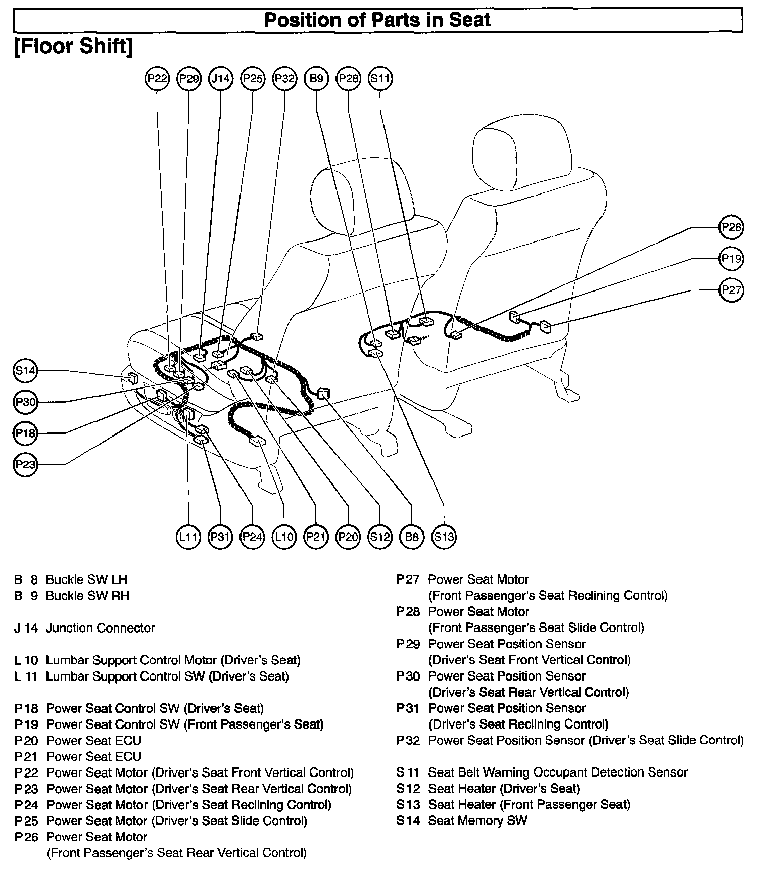Position Of Parts In Seat - Floor Shift:
