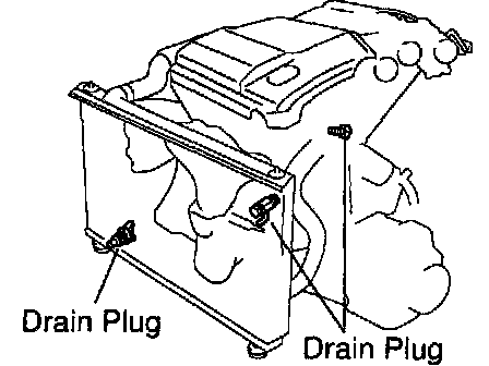 b. Loosen the radiator drain plug and engine drain plugs, and drain the coolant.