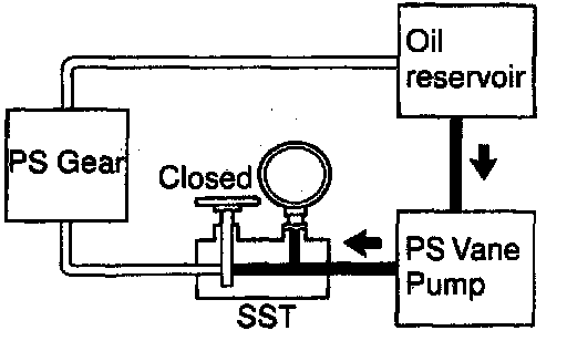 f) With the engine idling, close the valve of the SST and observe the reading on the SST.