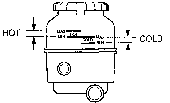 HINT: Check that the fluid level is within the HOT LEVEL range on the reservoir. If the fluid is cold, check that it is within the COLD LEVEL range.