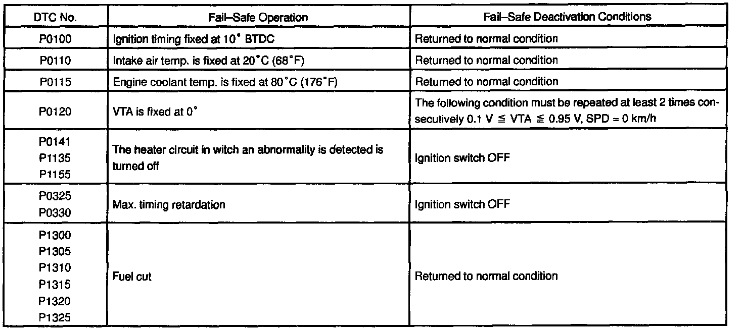 If any of the following codes is recorded, the ECM enters fail-safe mode.