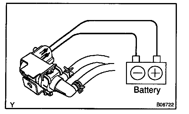 2. Connect the positive (+) and negative (-) leads from the battery to the VSV terminals for the EVAP.