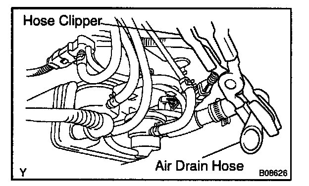 1. Close off the air drain hose at the marked position of the canister with a hose clipper or similar instrument.