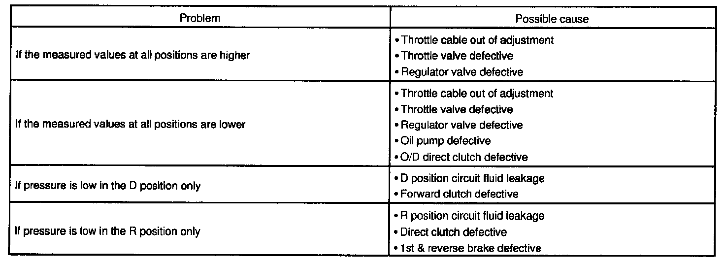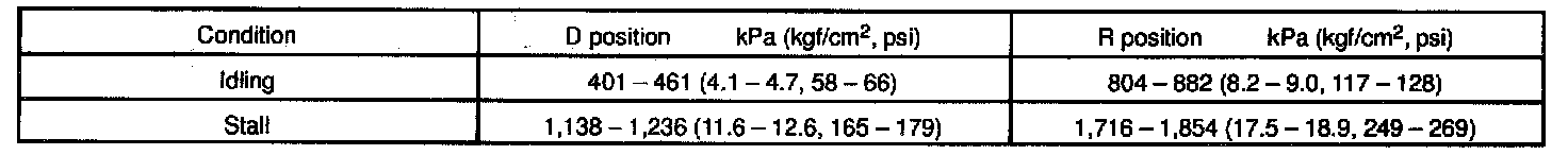 8. Depress the accelerator pedal all the way down. Quickly read the highest line pressure when engine speed reaches stall speed.