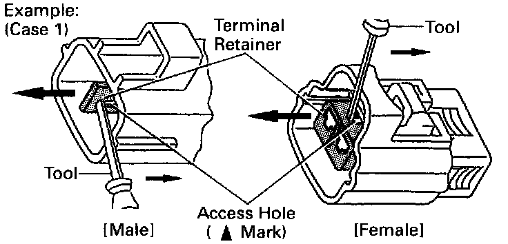 Type which cannot be pulled as far as Power Lock insert the tool straight into the access hole of terminal retainer as shown.