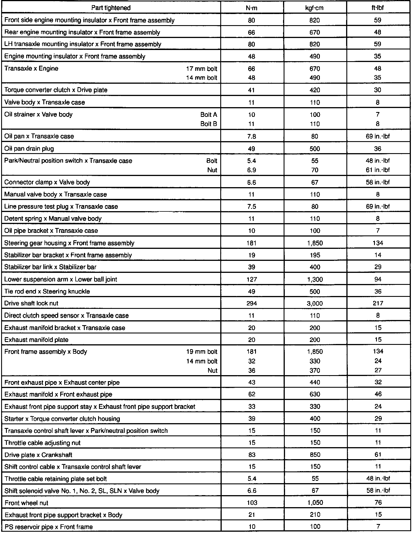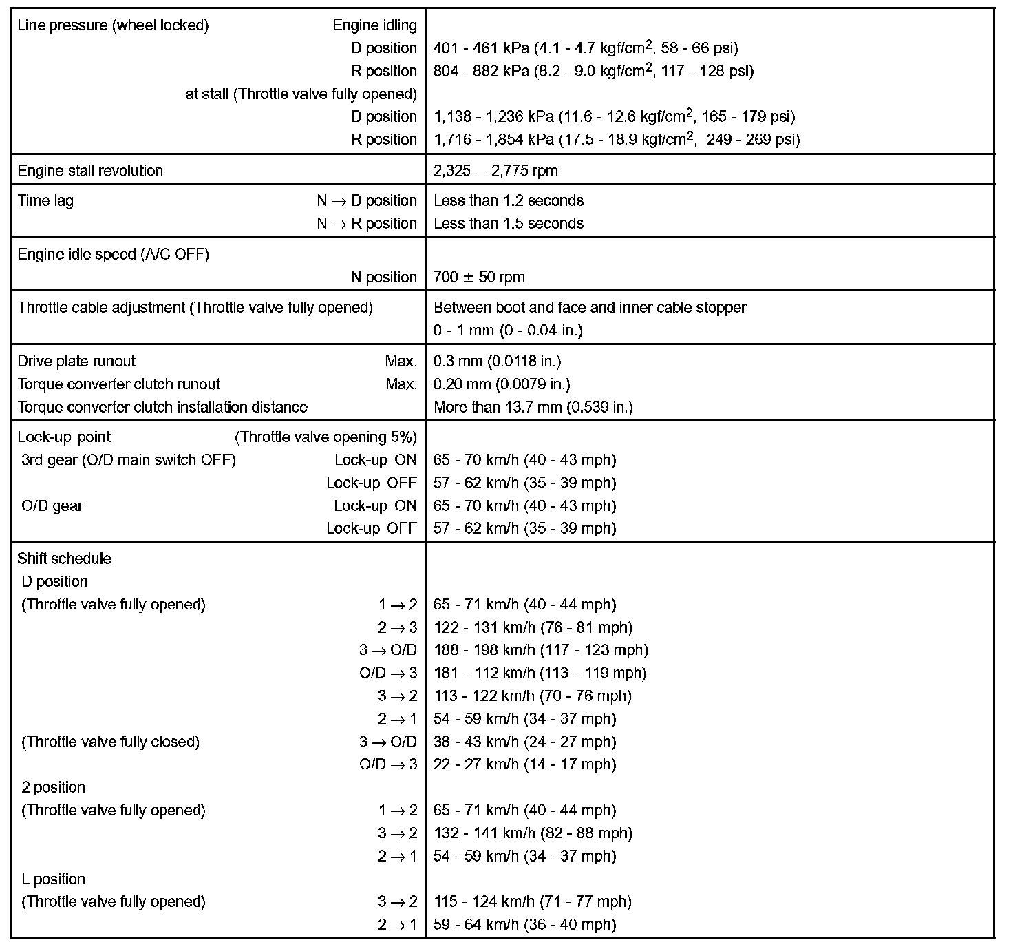 AUTOMATIC TRANSAXLE SERVICE DATA: