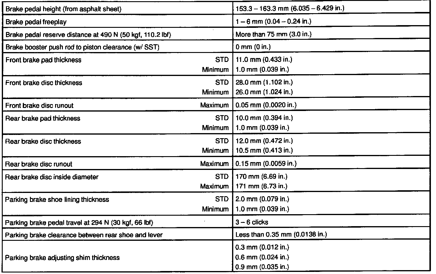 BRAKE SERVICE DATA: