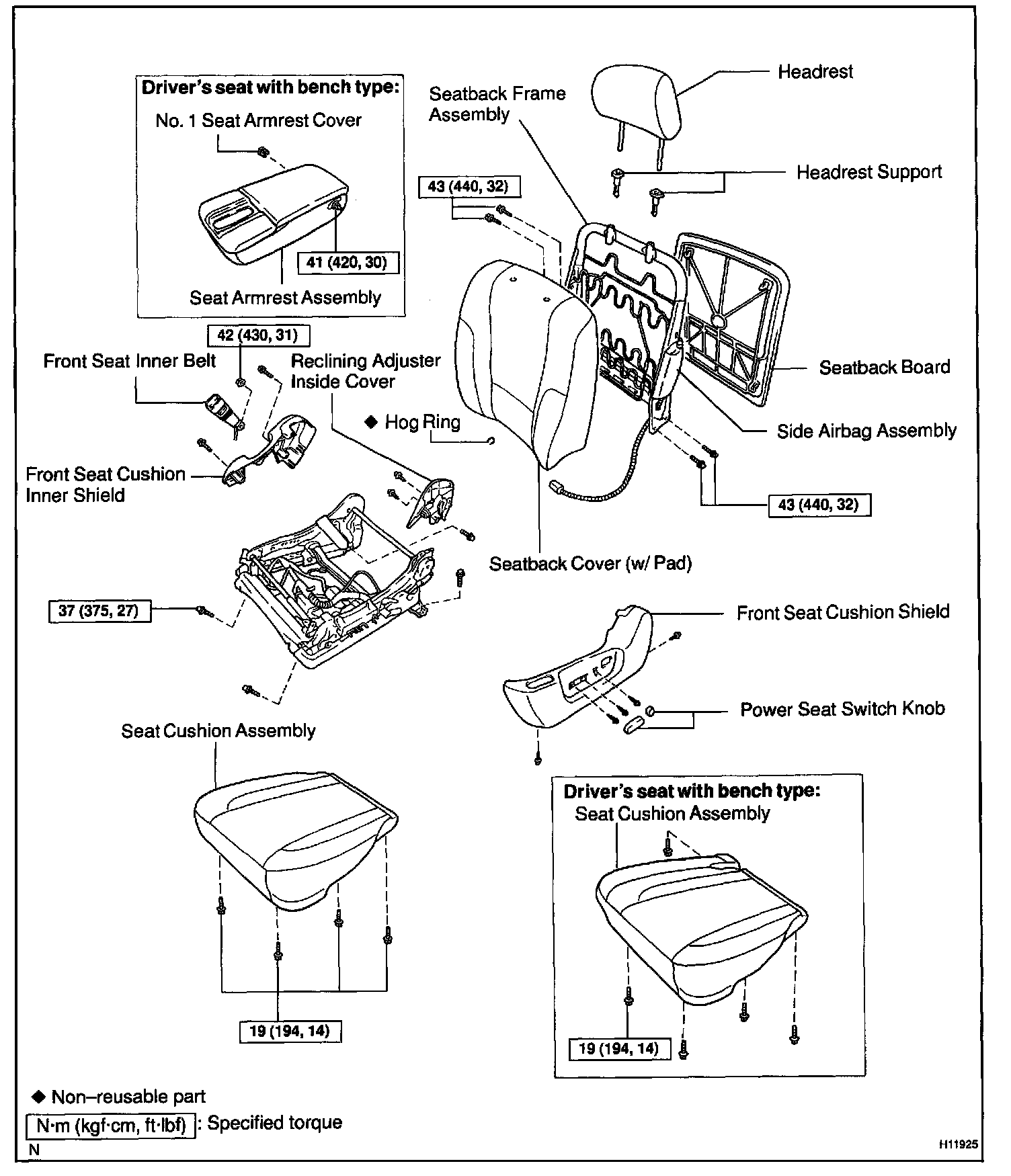 Side Airbag Assembly (Manual Adjuster Type):