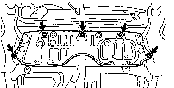d. Remove the 5 bolts and center engine under cover.