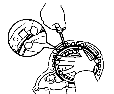 c. Using a screwdriver, install the snap ring. Be sure end gap of snap ring is aligned with the groove of the clutch drum.