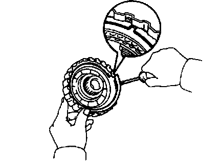 Using a screwdriver, be sure end gap of the snap ring is not aligned with the groove of the clutch drum.