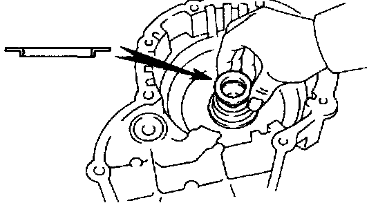 ^ Stop the press when the spring sheet is lowered to the place 1 - 2 mm (0.039 - 0.078 inch) from the snap ring groove, preventing the spring sheet from deforming.