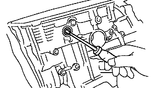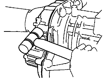 b. Install the bar into the case hole to drive out the drive pinion.