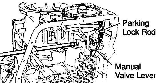 d. Slide out the shaft from the transaxle case and remove the manual valve lever and parking lock rod.