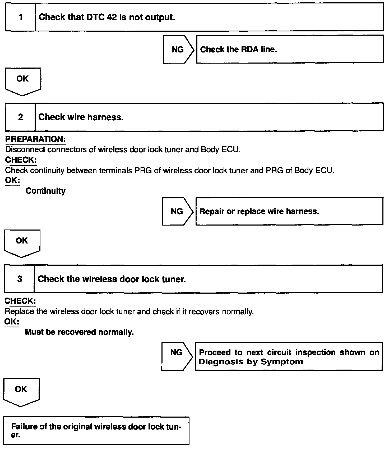 CIRCUIT DESCRIPTIONThe signal from the transmitter will be input to the body ECU through RDA line. RDA line is diagnosed by the Body ECU, so check DTC also in case of the failure of the wireless function.