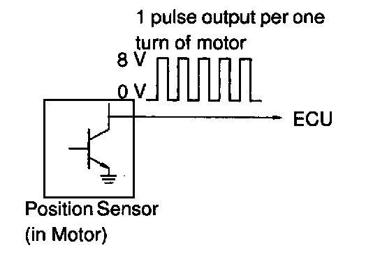 CIRCUIT DESCRIPTIONThe position sensor senses movement of the seat and send pulse signals to the ECU. The position sensor sends pulse to the ECU in proportion to the amount of seat movement, as shown in the diagram on the left.
