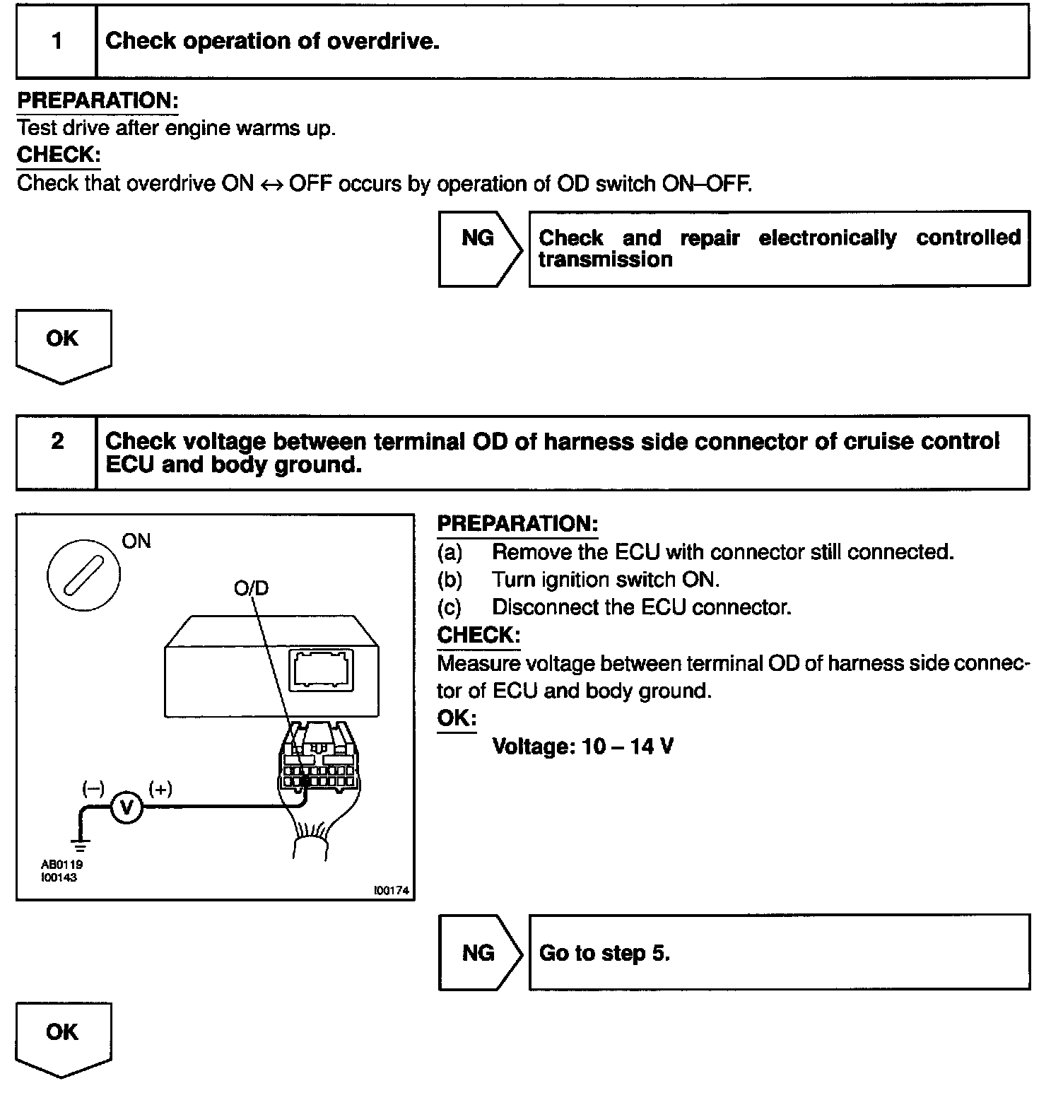 CIRCUIT DESCRIPTIONWhen driving uphill under the cruise control, in order to reduce shifting due to ON-OFF overdrive operation and to provide smooth driving, when down shifting in the electronically controlled transmission occurs, a signal to prevent upshift until the end of the uphill slope is sent from the cruise control ECU to the electronically controlled transmission.