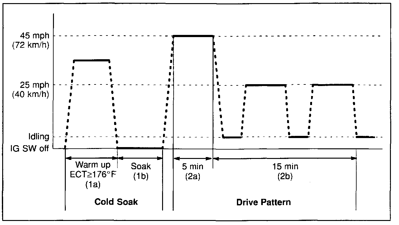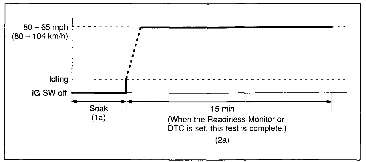 2a. Drive the vehicle at 50 - 65 mph (80 - 104 km/h) for about 15 minutes. (Refer to the illustration.)