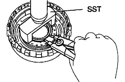 b. Place SST on the spring retainer, and compress the return spring with a press.