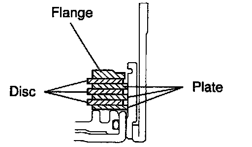 Check if the sliding surfaces of the discs, plates and flange are worn or burnt. If necessary, replace them.