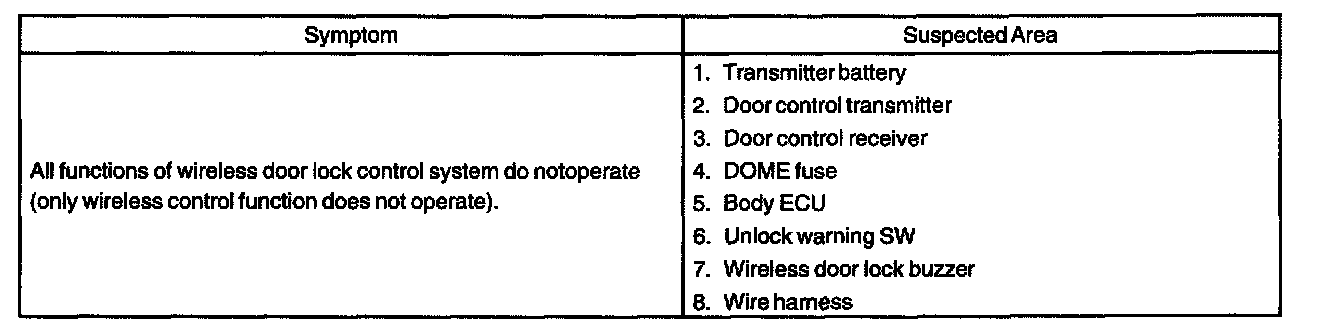 Problem Symptoms Table: